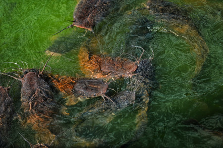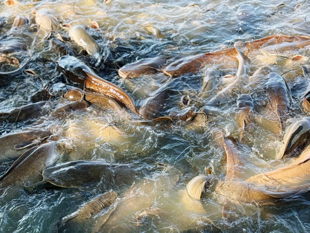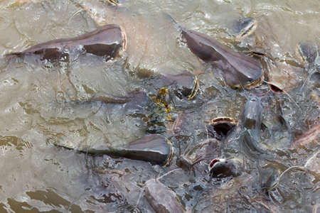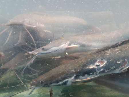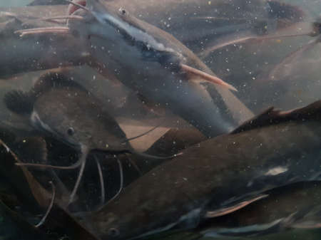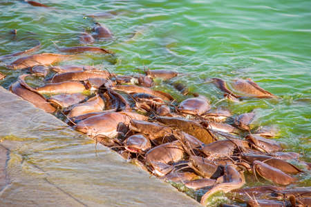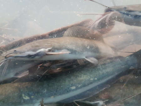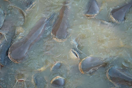 Group of catfish in the Emerald Pool, Northeast. Thailand.