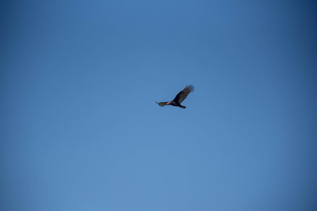 Turkey Vulture Cathartes aura Soaring Against a Clear Blue Sky - Ontario, Canada