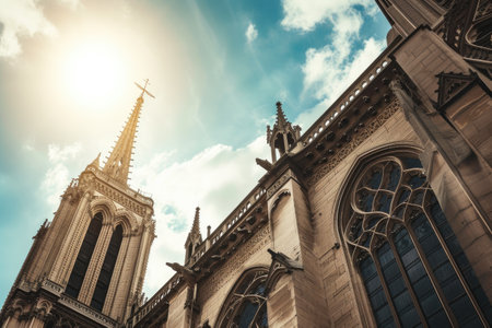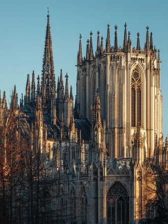 Majestic Gothic Cathedral with Ornate Spires and Towers in a European City Skyline Historic religious architecture featuring detailed stone facade pointed arches flying buttresses