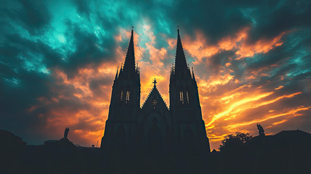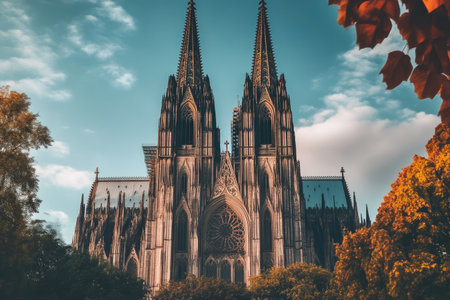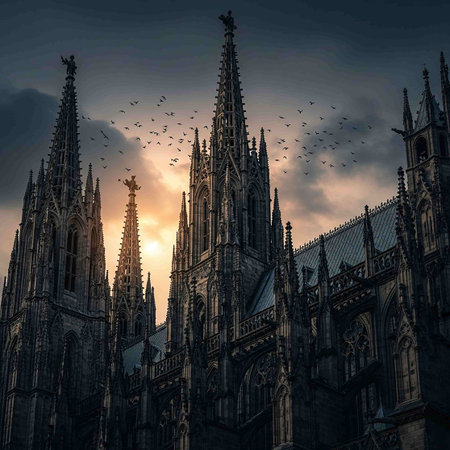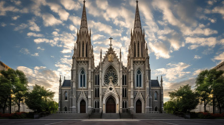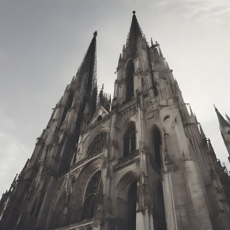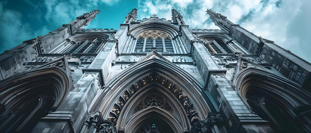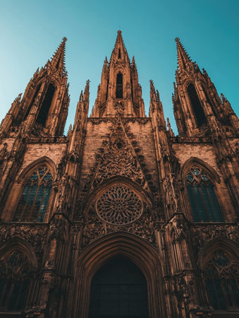 Majestic Gothic cathedral with soaring spires and ornate facade standing tall in the historic cityscape of a European destination