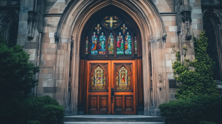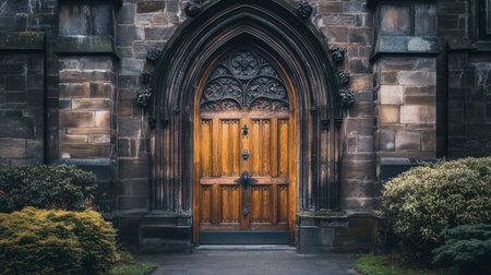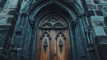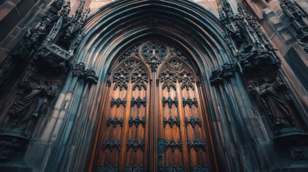 This stunning image features an elegant gothic doorway, showcasing intricate architectural designs and detailed craftsmanship that evoke historical significance and beauty.