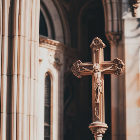 The cross shines brightly, symbolizing hope and faith within the sacred space of the church
