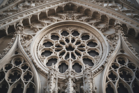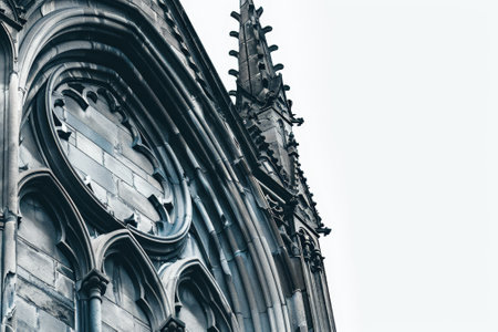 Classic Gothic architecture with pointed arches and sculpted details, blank space in background