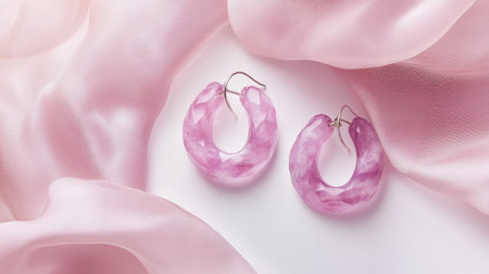 Discover elegant pink resin earrings beautifully displayed on soft blush satin, showcasing exquisite design and style for fashion enthusiasts and jewelry lovers.