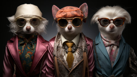Portrait of a gang of cats dressed in human clothes posing for the camera. Studio shot. Generative AI