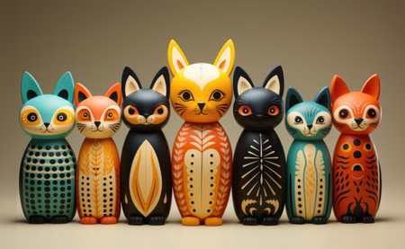 Set of colorful figures of funny volumetric cats.