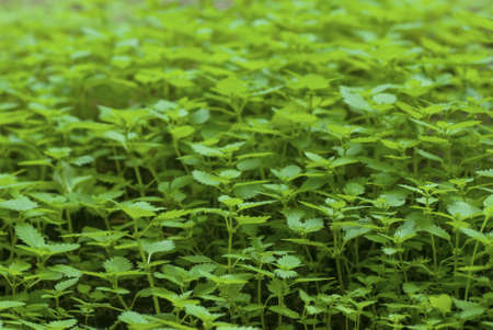 Nettle leaves on the nature in contrast sunlight. Background