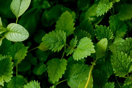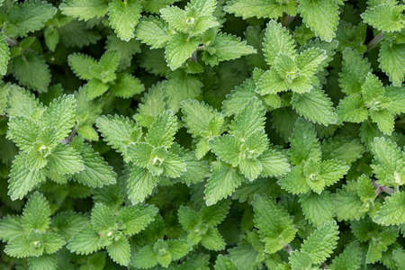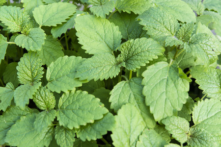 Leaves of melissa officinalis, background. Green garden