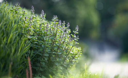 Beautiful green mint leaves during the summer