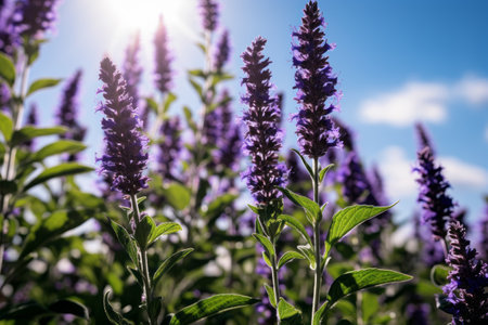 Varietal cultivated sage - medicinal aromatic herb blooms on a sunny summer day close-up