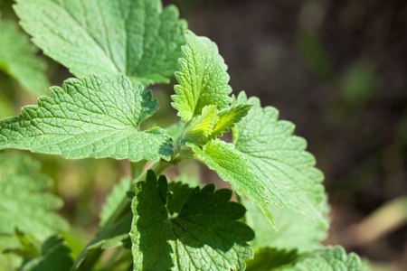 Melissa in the garden with backlight sun ray, close-up