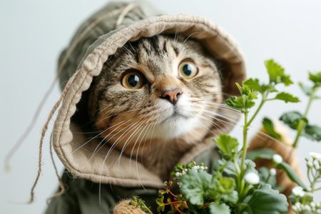 Happy cat wearing Gardener costumes, studio lighting, isolated on white background, stock photographic style