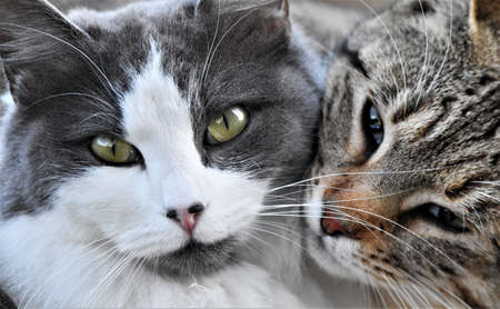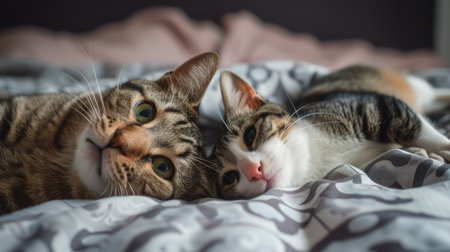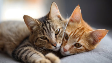 Cute Cuddling Cats Close Up Cozy Domestic Feline Companionship