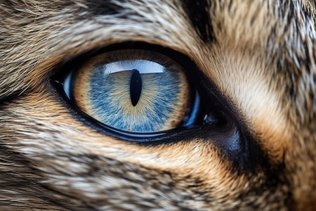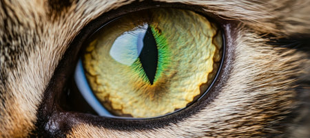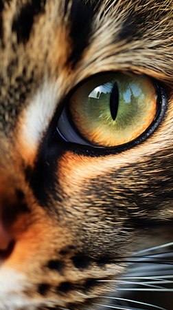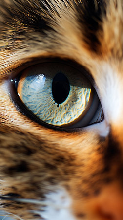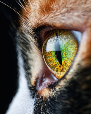 Macro shot of a cat s eye showcasing intricate details, vibrant colors, and a captivating gaze.