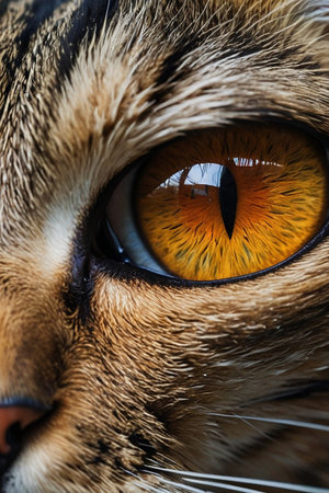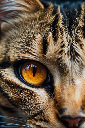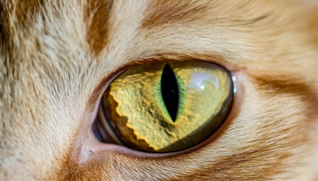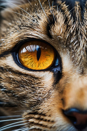 Stunning Close-Up of an Enigmatic Yellow Cat Eye, Showcasing Rich Colors and Intense Expression