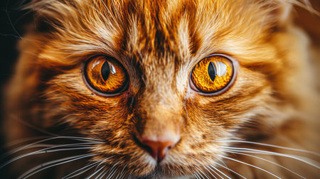Captivating Gaze of a Ginger Cat with Mesmerizing Amber Eyes in a Detailed Close-up Portrait
