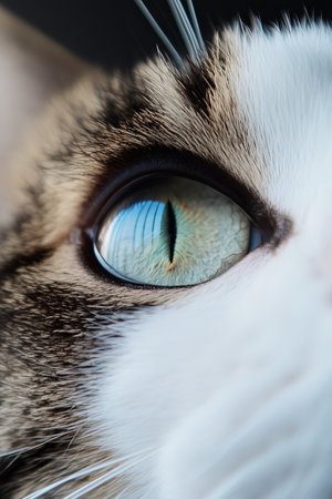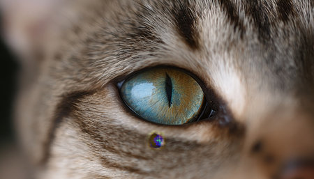 Close Up of a Beautiful Cat Eye with Stunning Blue Reflections and Exceptional Detail Captured