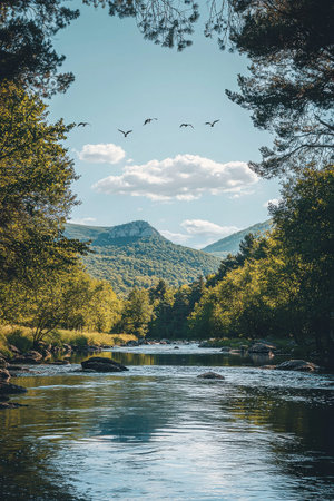 Serene nature landscape with river and mountain scenery