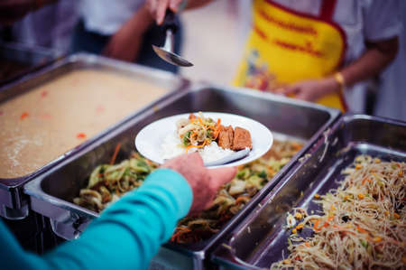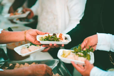 The hands of poor have been aided by charity food to alleviate hunger: The concept of social sharing
