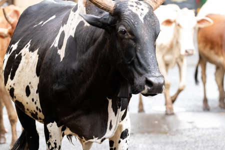 Indian cow strolling freely on the street for grazing