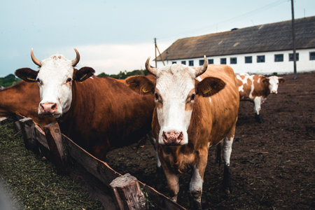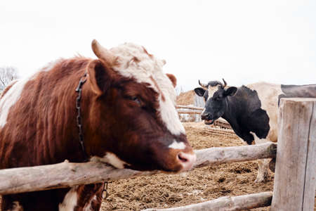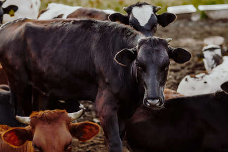 Cows on the form. Milk, meat production. Household animals.