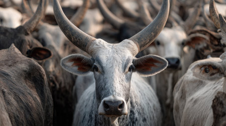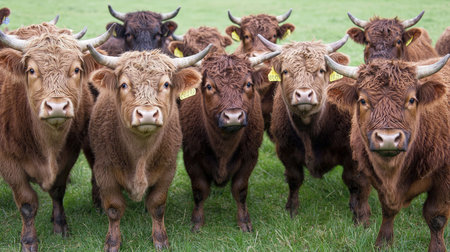 Close up of a herd of oxen in a meadow in South Africa
