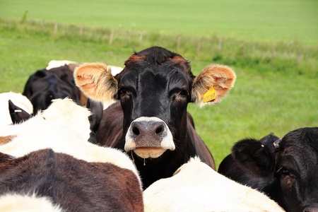 Cow amongst herd in a green field