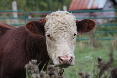 Portrait of a farm animal close up of cattle beast.