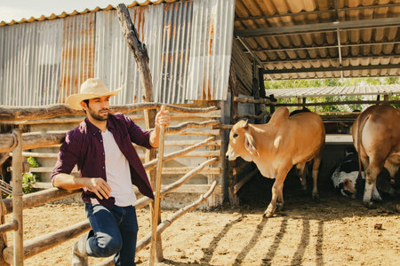 Rural life thrives as a dedicated farmer tends to his cattle. Concept Farming, Cattle, Rural Life, Agriculture, Livestock