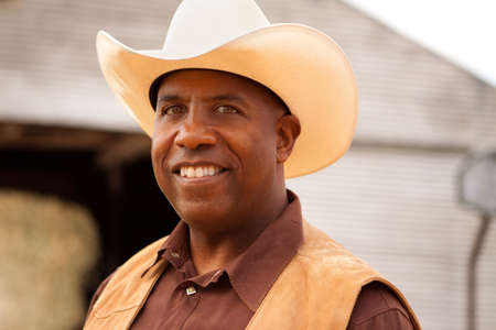 African American cowboy smiling and laughing.