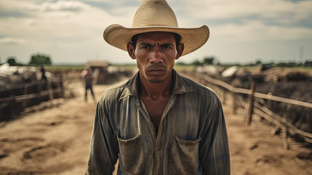 this natural portrait captures the rugged charm of an old peasant man farmer, his hat and weathered attire a reflection of his lifelong dedication to working the land.
