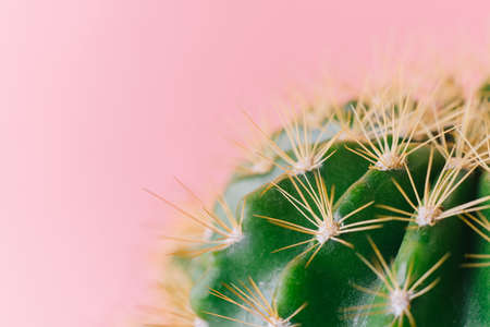 Cactus close up on the pink background. Macro shot, trendy pastel colors. Minimal creative still life