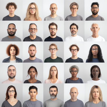 AI generated collection of headshots featuring a diverse range of smiling individuals