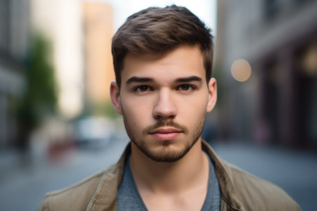 portrait of a casually dressed young man looking at the camera, created with generative ai