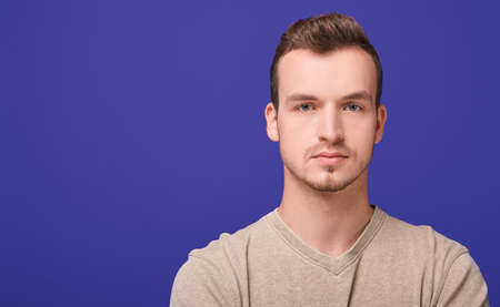 Close up portrait of young man. Handsome guy face.