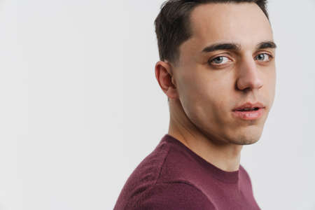 Young brunette man posing and looking at camera isolated over white background