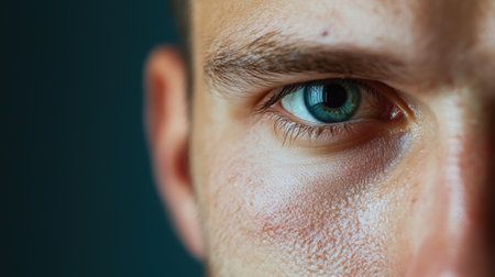 Close view of a young mans facial features showcasing smooth skin and focused expression