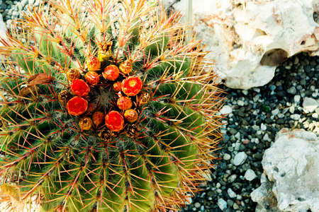 Top view on blossoming cactus. Close up