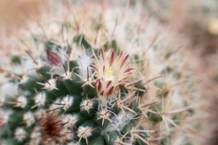 Flowering Mammillaria Mammillaria magnifica cactus in the botanical garden, Arid Plants. No focus, specifically.