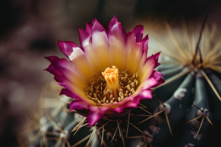 A close up of a flower on a cactus. Generative AI image.