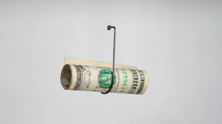 Dollar On A Fishing Hook Isolated On White Background