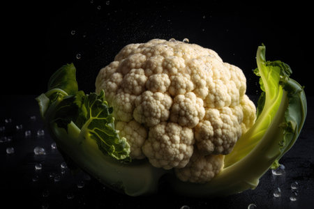 Fresh raw organic cauliflower with leaves. Generative AI