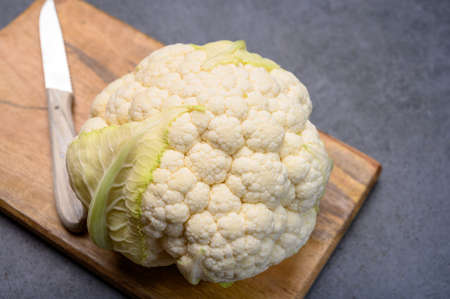 Fresh whole head of white organic cauliflower cabbage ready to cook