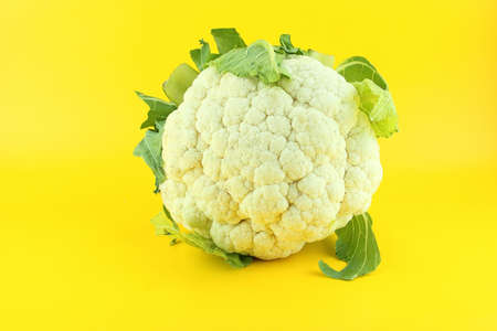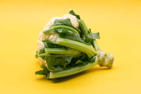 Fresh cauliflower isolated on yellow background .