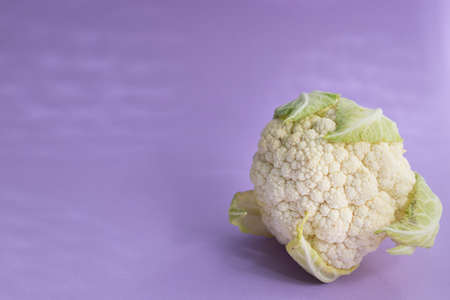 Whole cauliflower isolated on purple background. Healthy life. Local and km 0 product. Close up view.