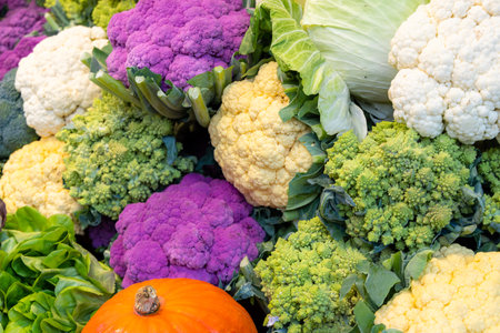 Cauliflower background. Different types of cauliflowers. Cauliflower background.