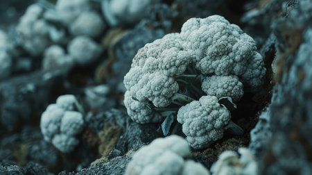 Freshly harvested organic cauliflower heads displayed on ice, perfect for health-conscious cooking.