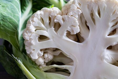 close-up fresh product organic healthy vegetarian food cauliflower interior exterior detail
