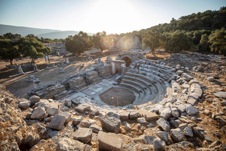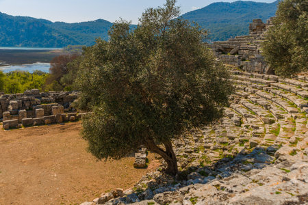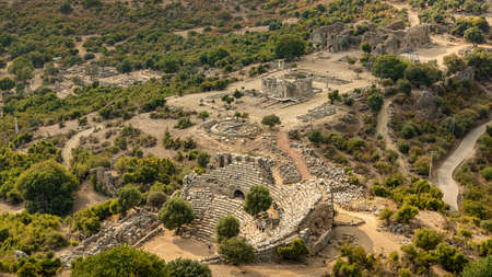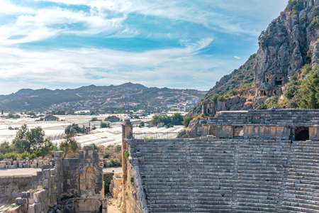 Ruins of ancient theater in Xanthos town, Turkey old roman and lycian rock tombes and civilization