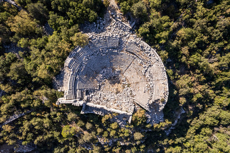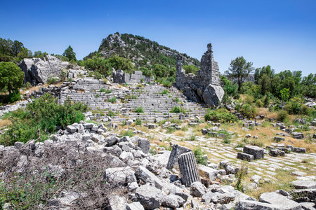 The roman theater in the ruins of the city of termessos in the mountains near antalya near the mediterranean coast of anatolia- termessos, antalya, turkey